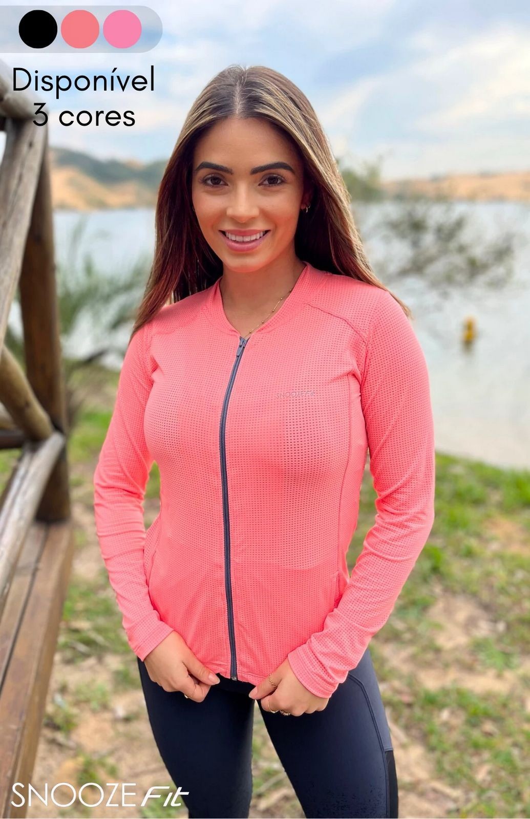 jaqueta slim aero dry uv50+ com recortes e gola fem. snooze