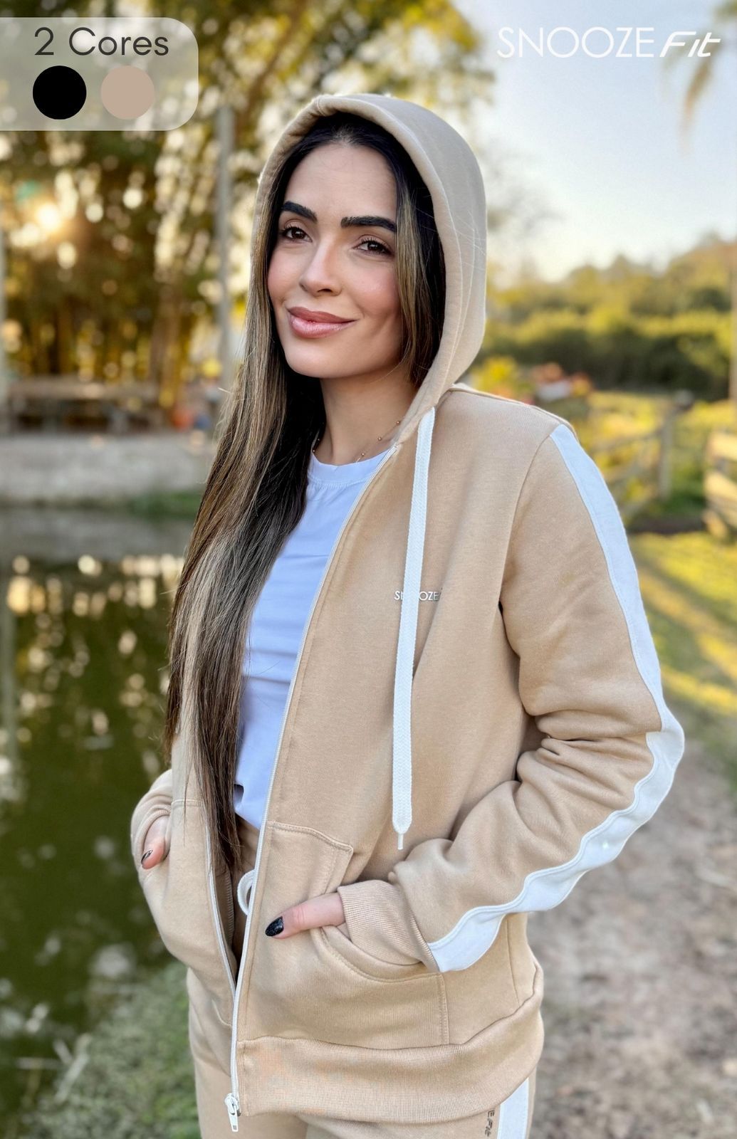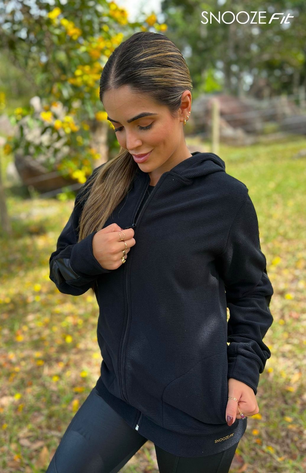 jaqueta fleece thermic soft com capuz e bolso feminina snooze