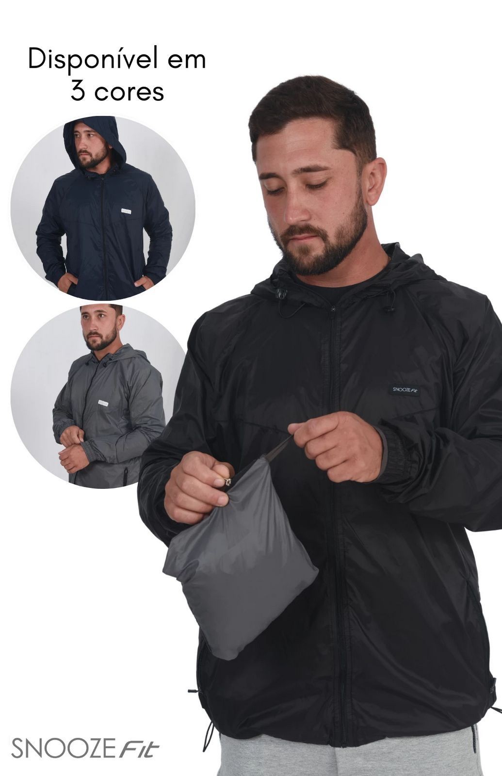 Conta com elástico e reguladores no capuz e na cintura, para você regular exatamente pro seu corpo.