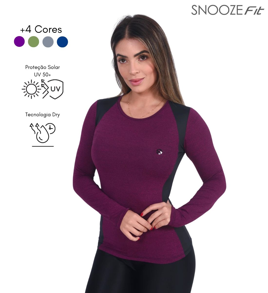 A Blusa Baby Look Speed Slim Fit manga longa é um modelo pensado em valorizar a silhueta, o recorte lateral além de estético, também auxilia no conforto térmico devido ao tecido com microfuros.