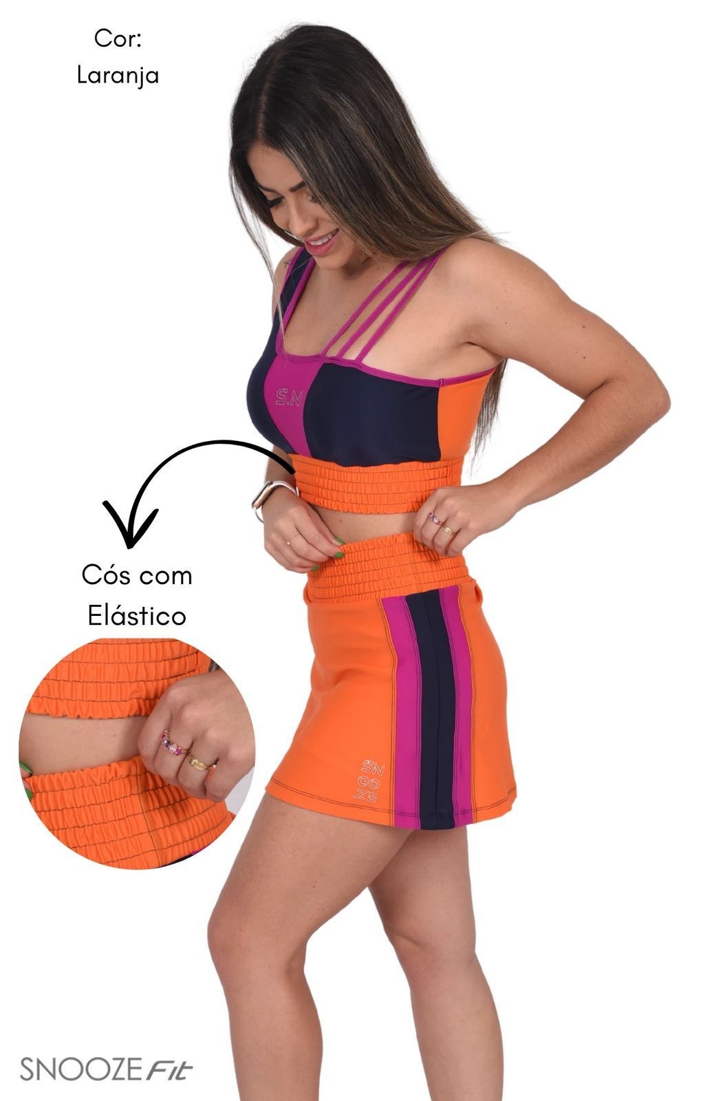 O cós em elástico embutido garante a excelente sustentação ideal para um look super esportivo.