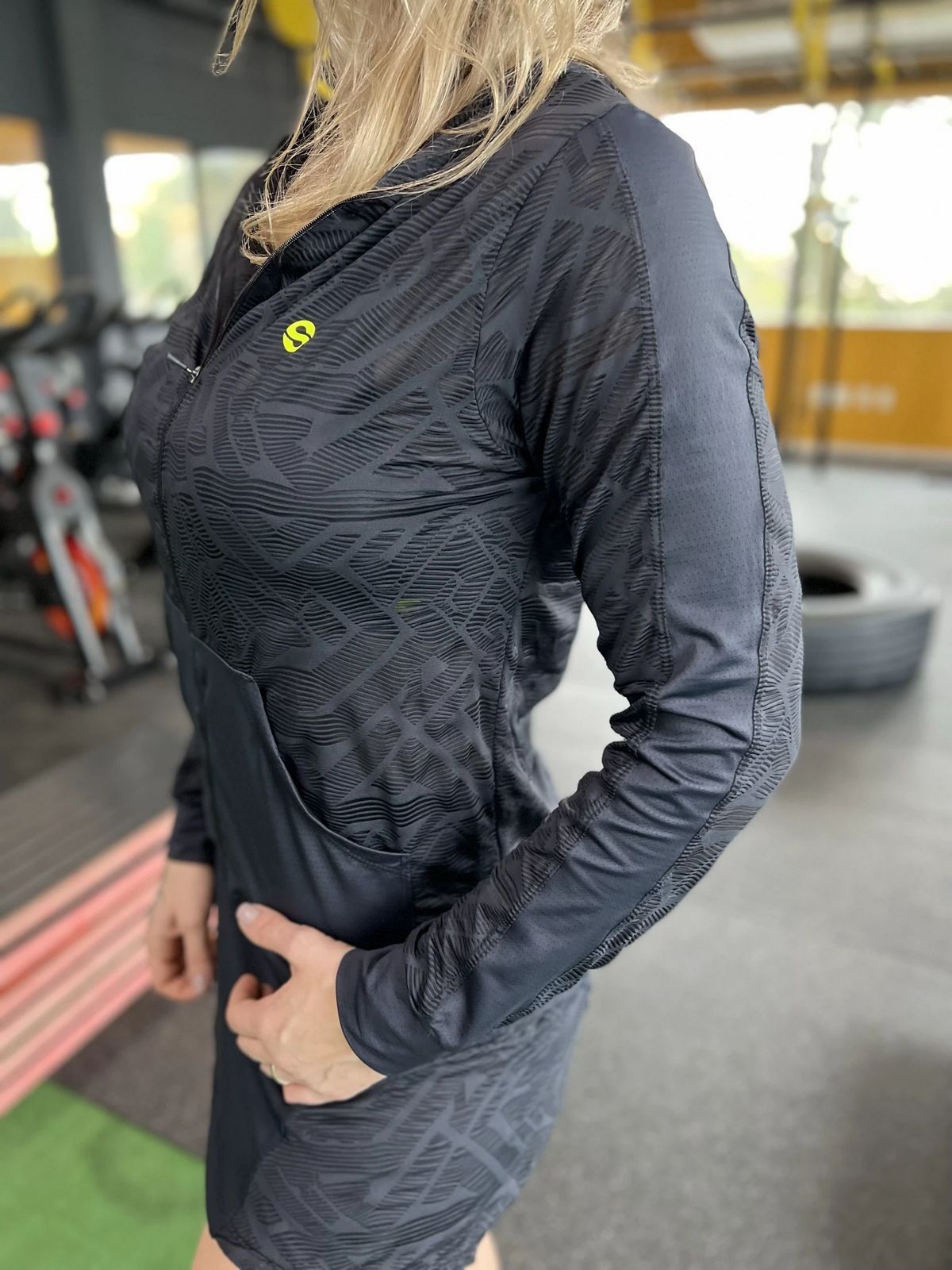 Possui Capuz anatômico e fechamento em zíper para complementar seu design estiloso e esportivo.