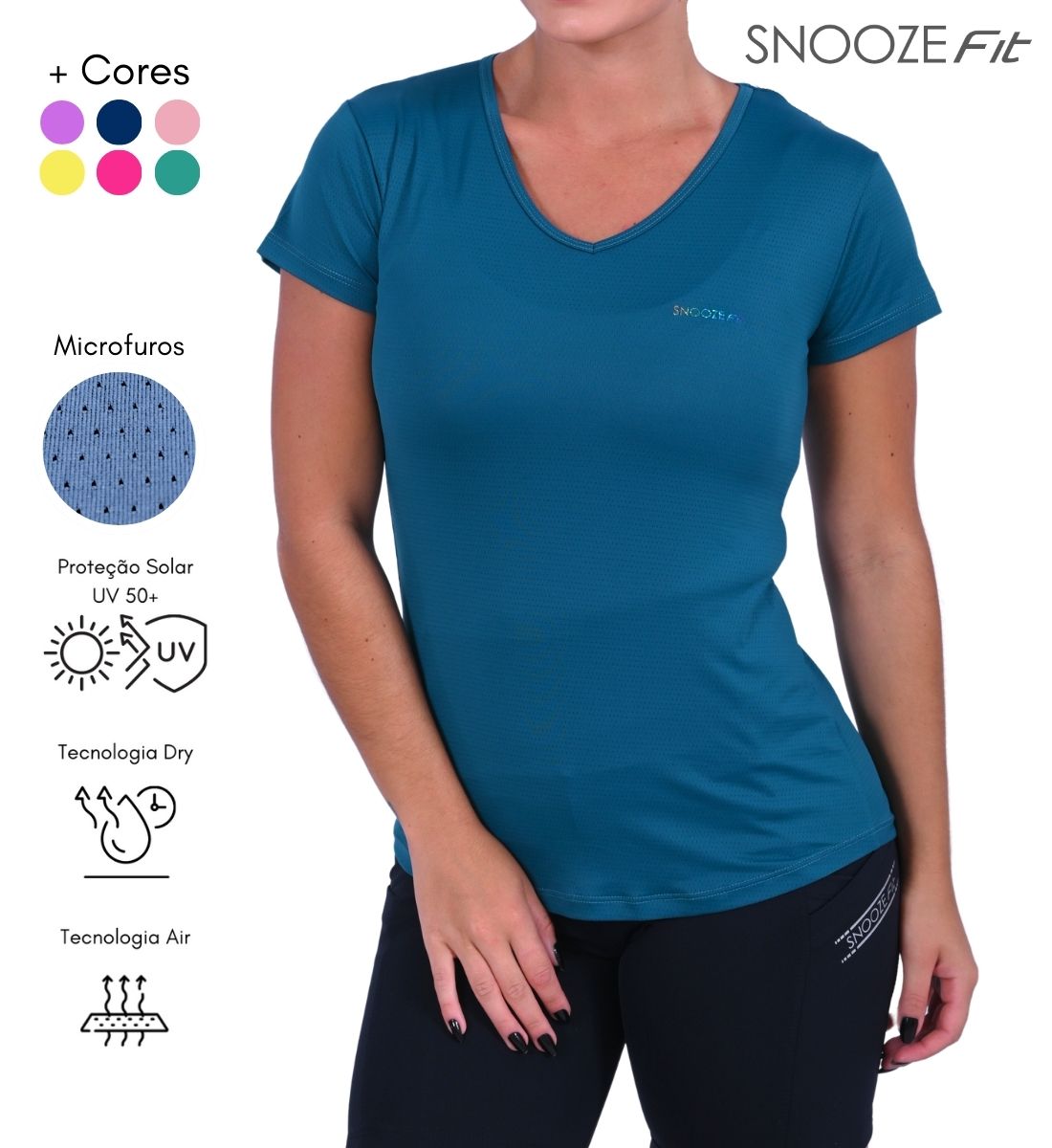 Possui o decote em V, essa peça é um pouco mais alongada e boleada na parte de trás. Proporciona proteção UV50+ que protege a sua pele dos raios nocivos do Sol.