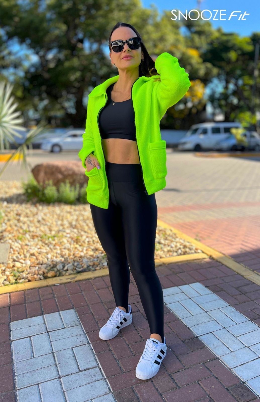 Feita em tecido sherpa com textura macia e volumosa, ela oferece excelente conforto térmico. O destaque fica por conta do bolso cargo com detalhe neon, que dá um toque urbano e super atual à peça. A gola alta protege do vento e traz ainda mais estilo ao visual.