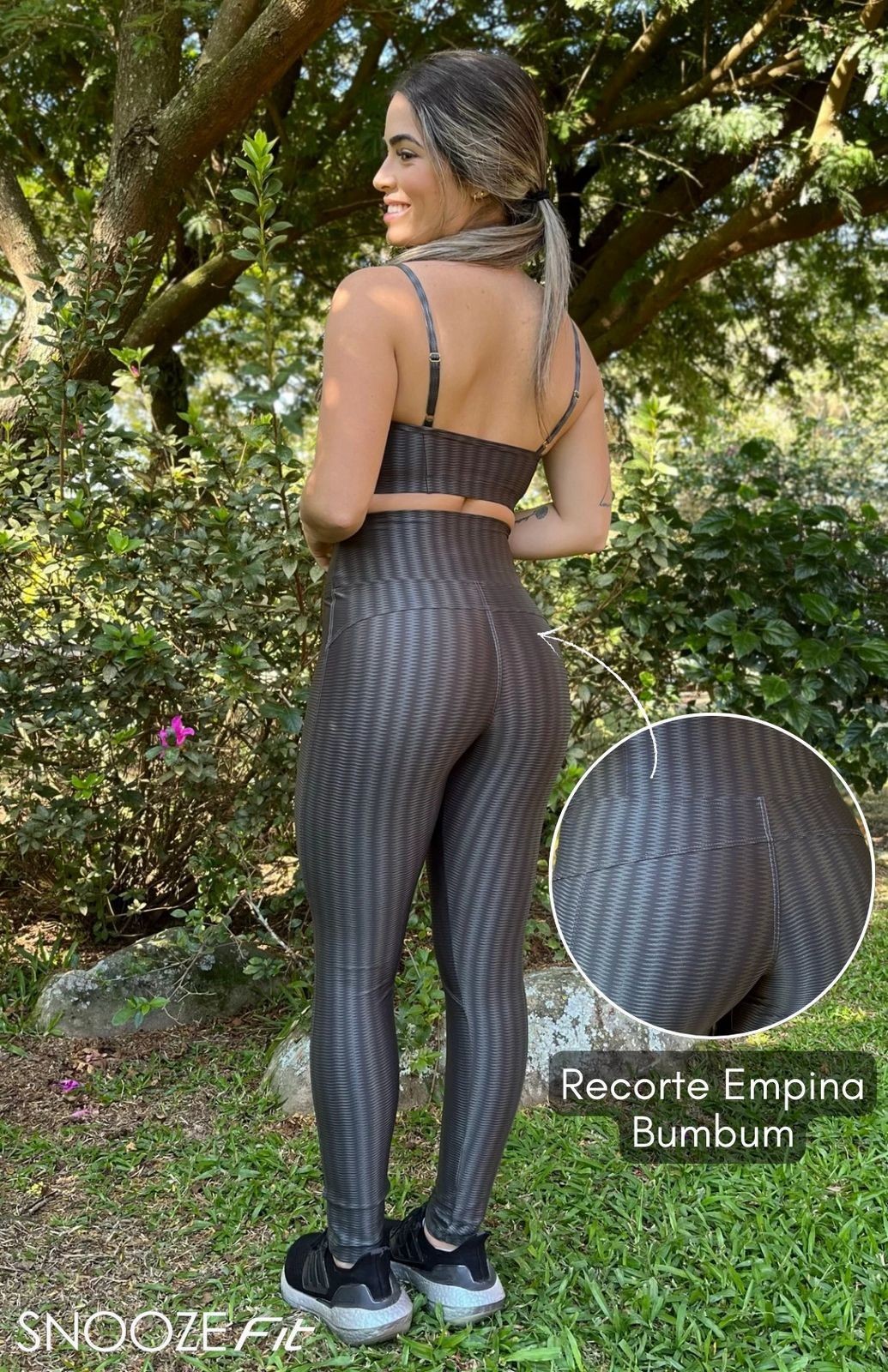 A Legging Green Abstract é uma peça única e atraente que certamente se destaca. O recorte Empina Bumbum é estratégico para valorizar sua silhueta e realçar suas curvas, enquanto a textura proporciona conforto.