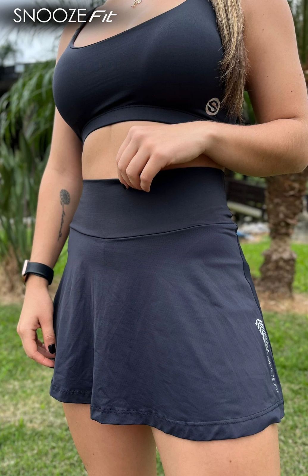 A parte do short também é confeccionada em tecido de fibra de poliamida que proporciona o toque gelado e rápida evaporação do suor, além de contar com proteção UV50+, deixando você segura para praticar esportes ao ar livre.