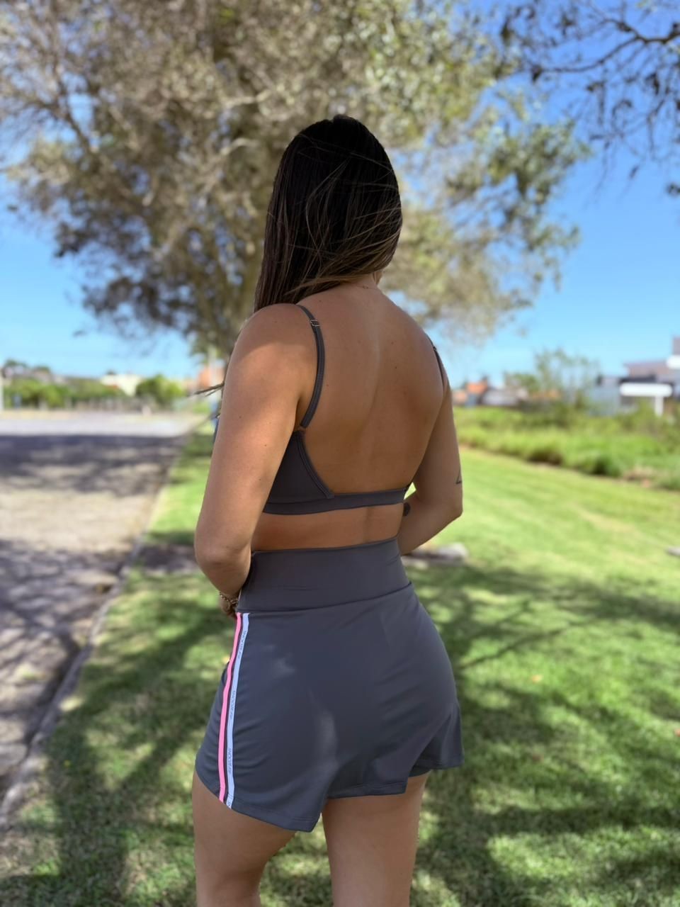 Conta ainda com modelagem aberta na parte das costas e alças finas com regulador para não marcar no sol, perfeito para esportes de areia como Beach Tennis e Voleibol.