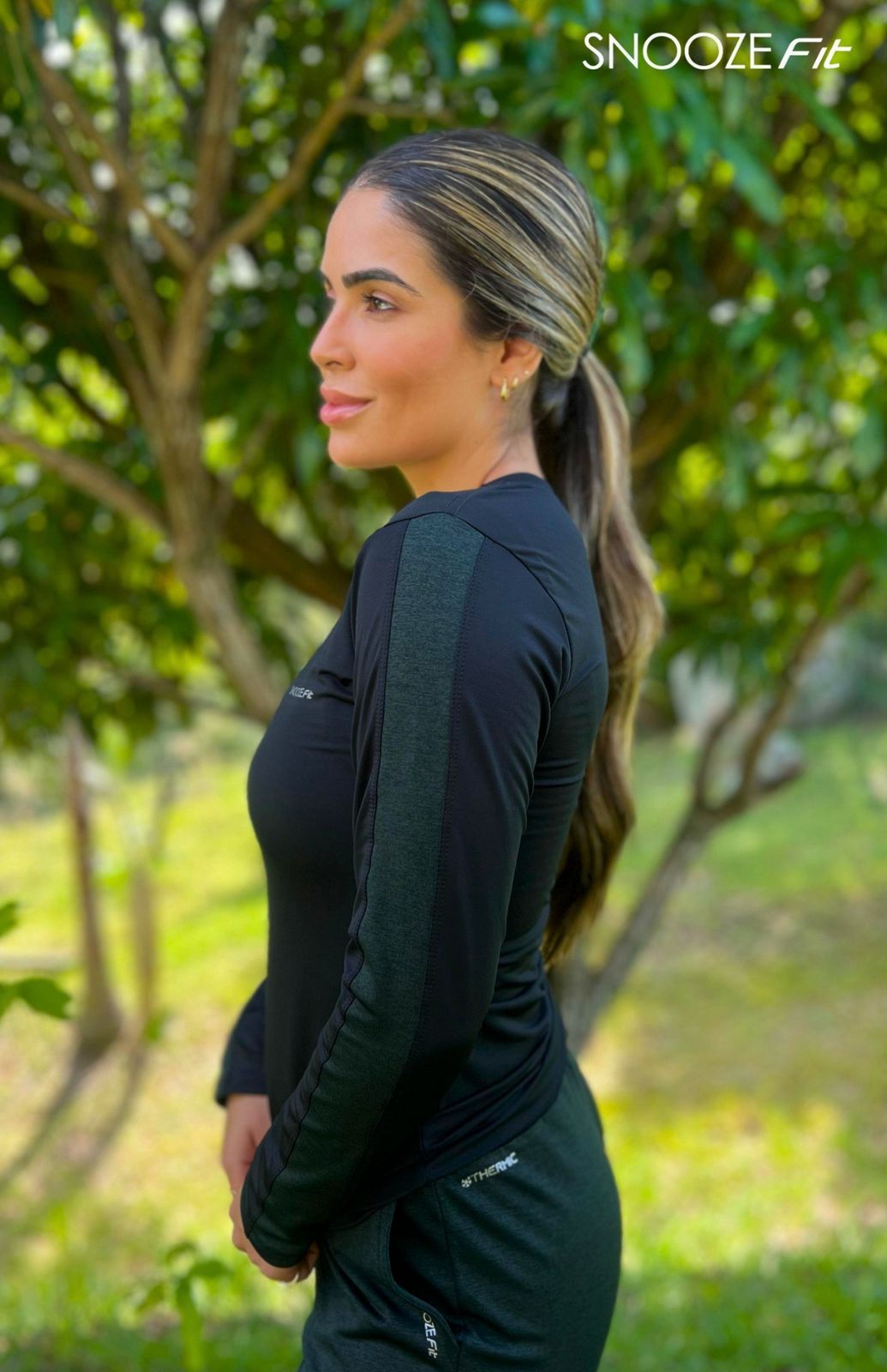 Com tecido tecnológico de toque macio e recortes estratégicos que valorizam o corpo, é uma peça coringa para looks fitness ou casuais no outono/inverno.