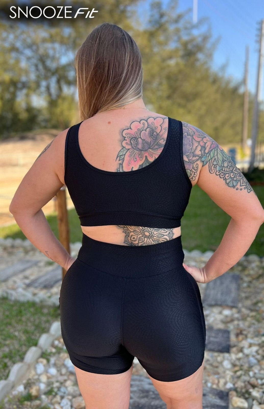 As alças largas, por sua vez, garantem mais suporte e estabilidade, enquanto a alta compressão proporciona mais segurança e ajuda a reduzir a vibração muscular durante a atividade física.